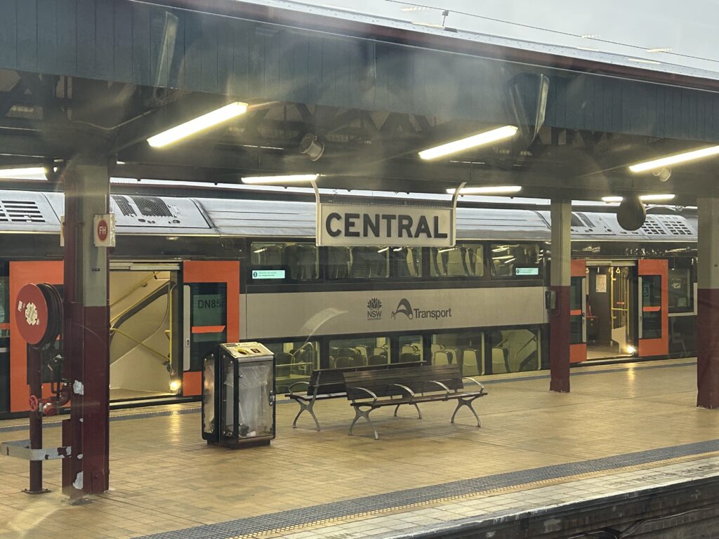 ブルー・マウンテンズは観光スポットがたくさん。全部回っていると時間がないので、今回は「エコー・ポイント」「シーニック・ワールド」「ルーラ村」の3か所に決定。効率よく回るため、朝7:25発の電車でセントラル駅からカトゥーンバ駅へ向かいます。