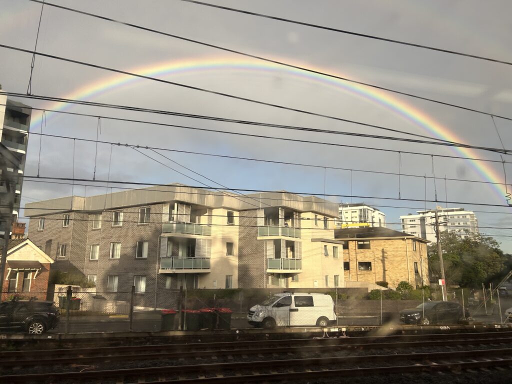 車窓からは昨日の雨のおかげで見事な半円の虹が出現!絶景への期待を膨らませながら、約2時間でカトゥーンバ駅に到着です。