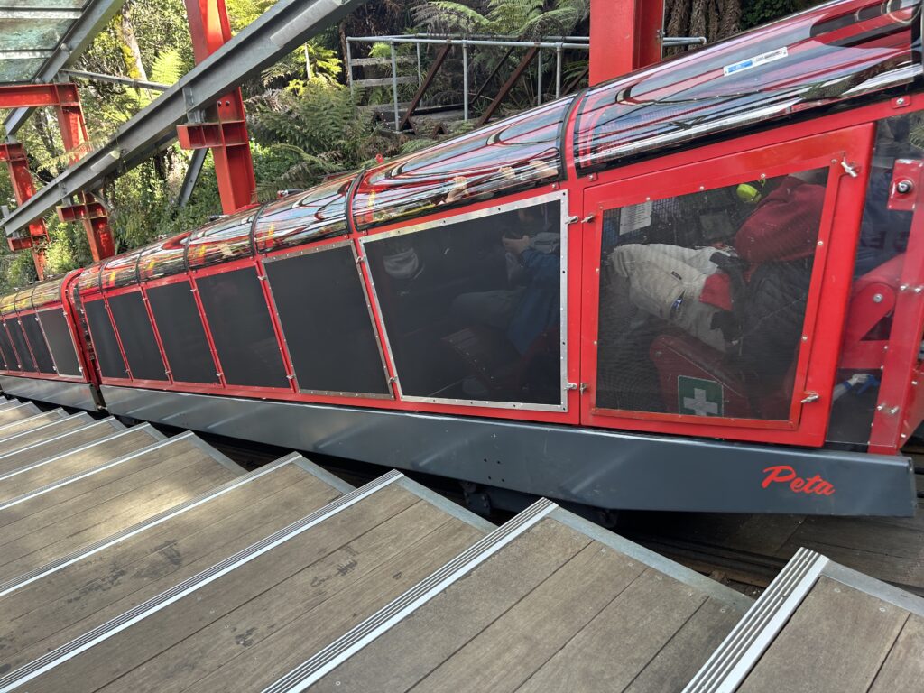 基点となるスポットへ戻り、次は世界一の急勾配を誇る「シーニック・レールウェイ」。