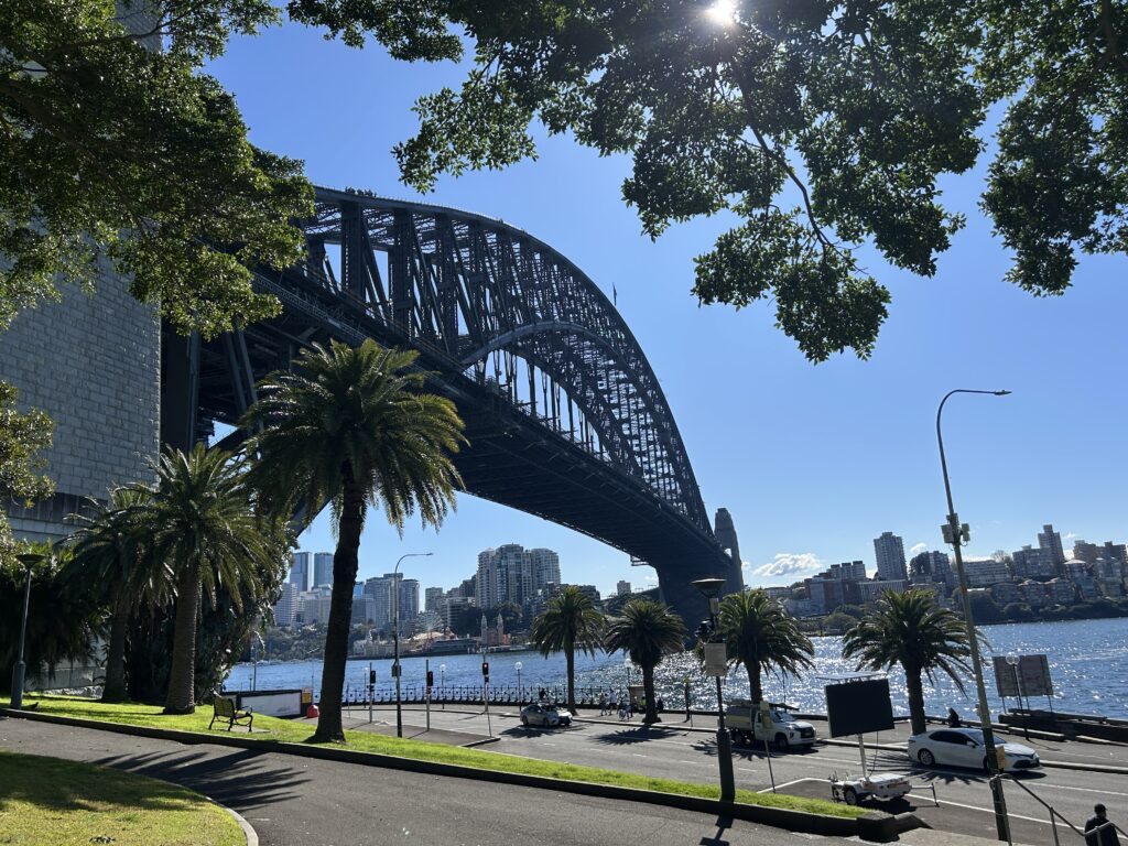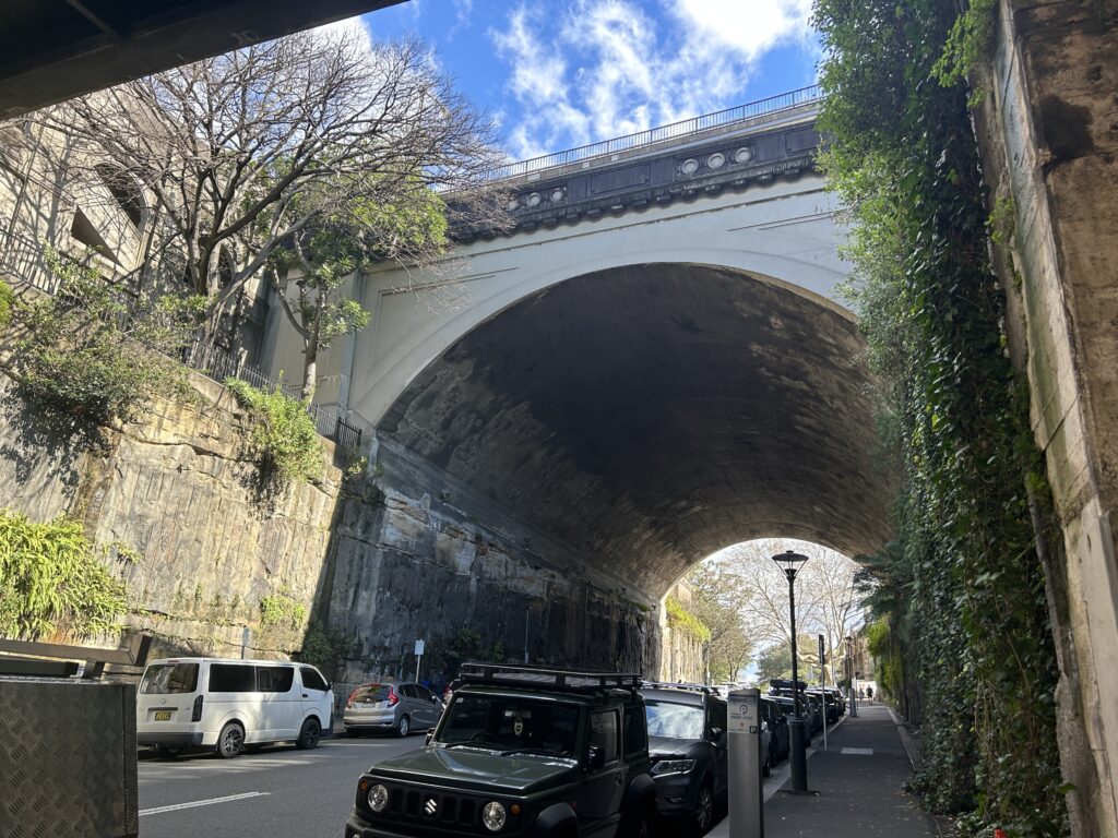 そして、ロックス地区散策で外せないのが、ロックス側からのハーバーブリッジ。間近で見るハーバーブリッジは大迫力のひと言。グレーの鉄橋が空と湾の青に挟まれて、オペラハウスから見る景色とはまた別の美しさでした。