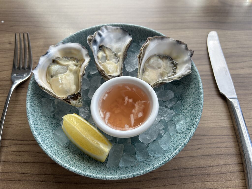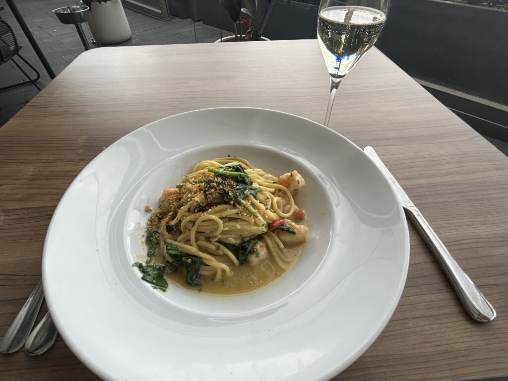 シドニーに来たからには牡蠣を!ということで、生牡蠣3種と海鮮パスタ、シャンパンをオーダー。お会計9,685円。ランチからかなりの出費です。