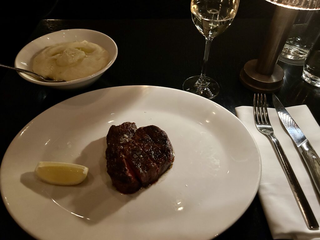 フィレは柔らかく絶品で、マッシュポテトは過去最高の美味しさでした。ただ、マッシュポテトは2〜3人でシェアする量なので、かなりのボリュームで、一人で食べたらかなりのカロリーです。