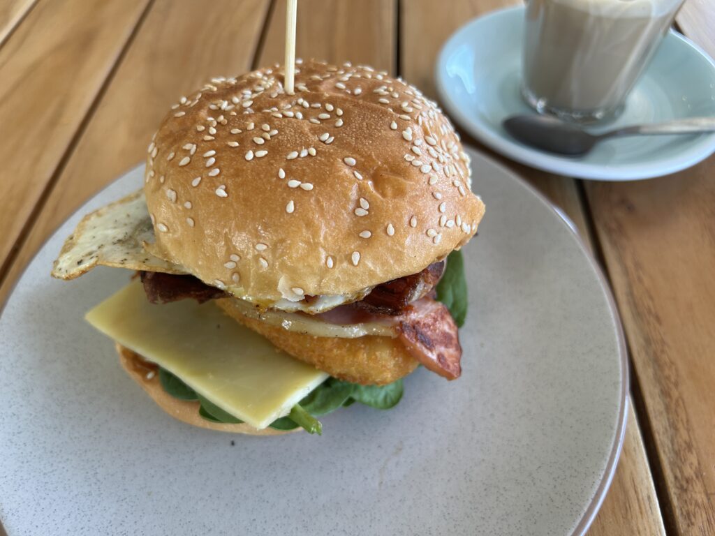 注文したのは Deluxe Breaky Burger とカフェラテ(合計3,399円)。