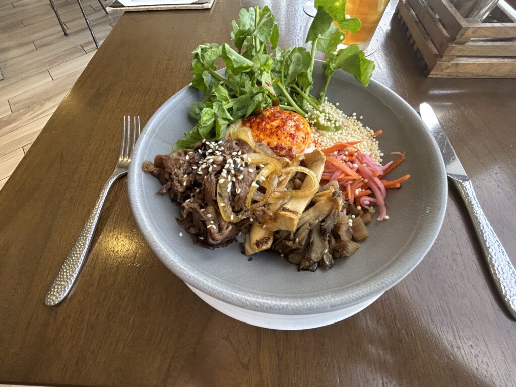 「Beef Fat Rice」というピビンパと甘辛牛丼の中間のような料理を注文(合計¥5,236)