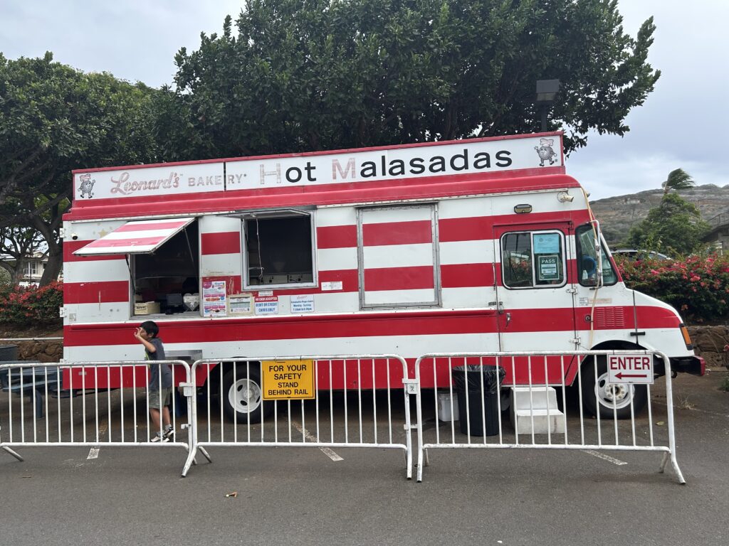 目的地に向かう前に案内してくれたのは、ハワイでは有名な Leonard’s Bakery(レナーズ・ベーカリー) のマラサダトラック。