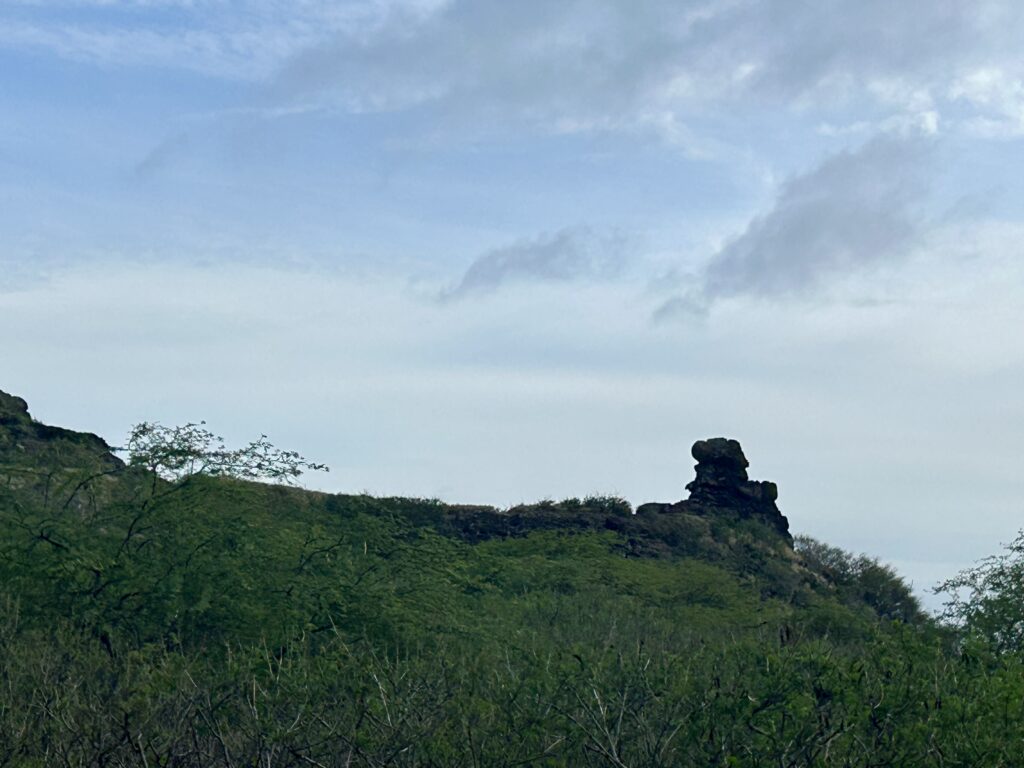 東オアフの端に位置し、火の女神ペレが座ったという伝説の残る、巨大な岩。